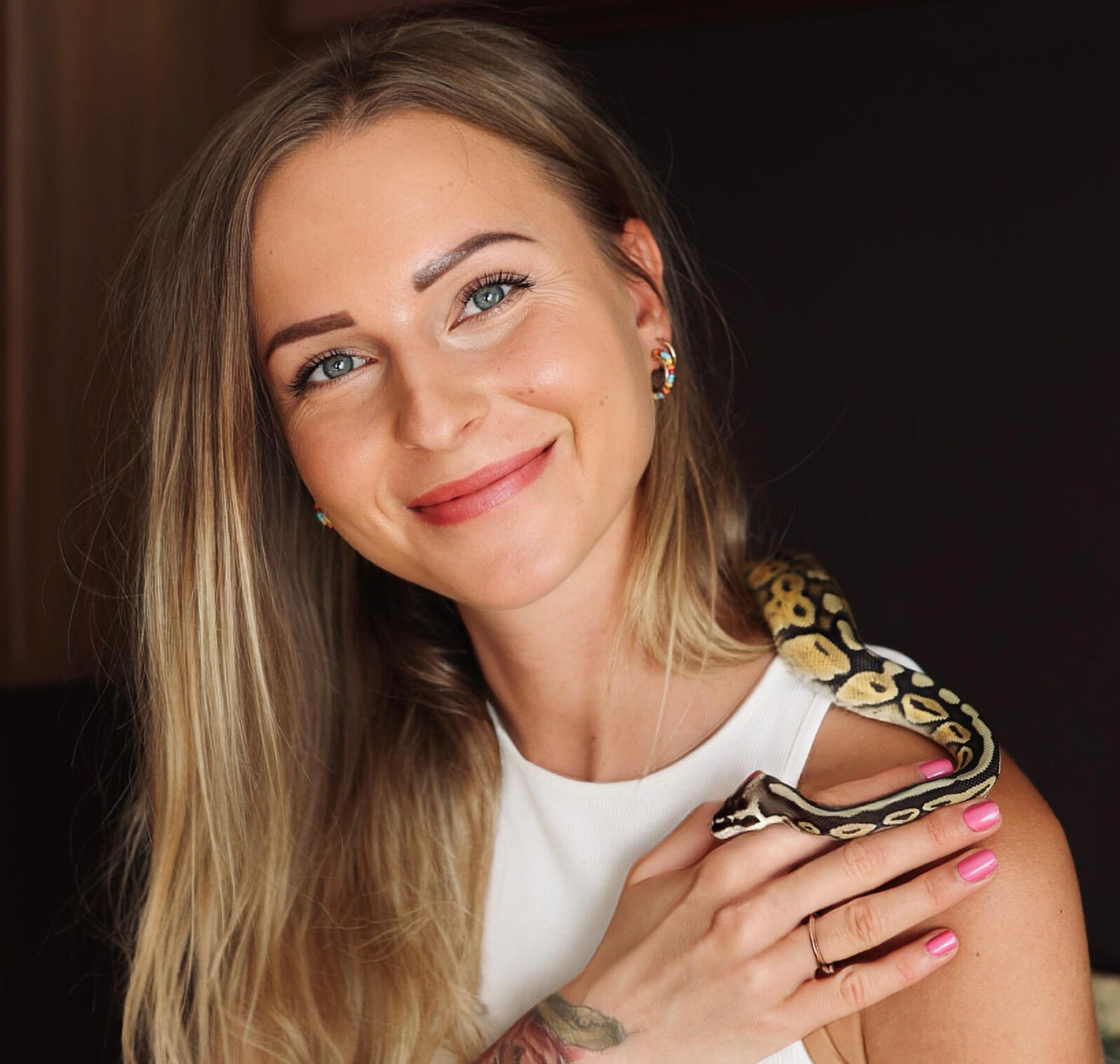 Je ženou, která se rozhodla naslouchat hlasu svého srdce a vydat se na cestu, jež jí vede k hlubokému propojení sama se sebou, se zvířaty, s přírodou a s celým vesmírem. Každý den se učí z moudrosti zvířat a světelných bytostí, kteří jí jemně vedou, jak žít v souladu s vlastní duší, jak naslouchat své vnitřní moudrosti a srdci a jak je důležité opět si dovolovat plně cítit a vnímat (nejen) samu sebe. Věří, že v každém okamžiku máme možnost změny a že všechno, co si ze srdce přejeme, je skutečně možné. A proto se s úžasnou krajtou královskou jménem Isis rozhodli společně poskytovat hadí terapie, které je vedou k hlubšímu propojení s tím, kým doopravdy uvnitř samy sebe jsme. Každý z nás má právo žít svůj život podle svých přání, otázkou však je, zda si dovolíme projevit svou jedinečnost a sílu a rozhodneme se jít svou vlastní cestou.